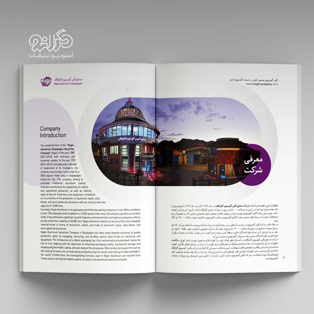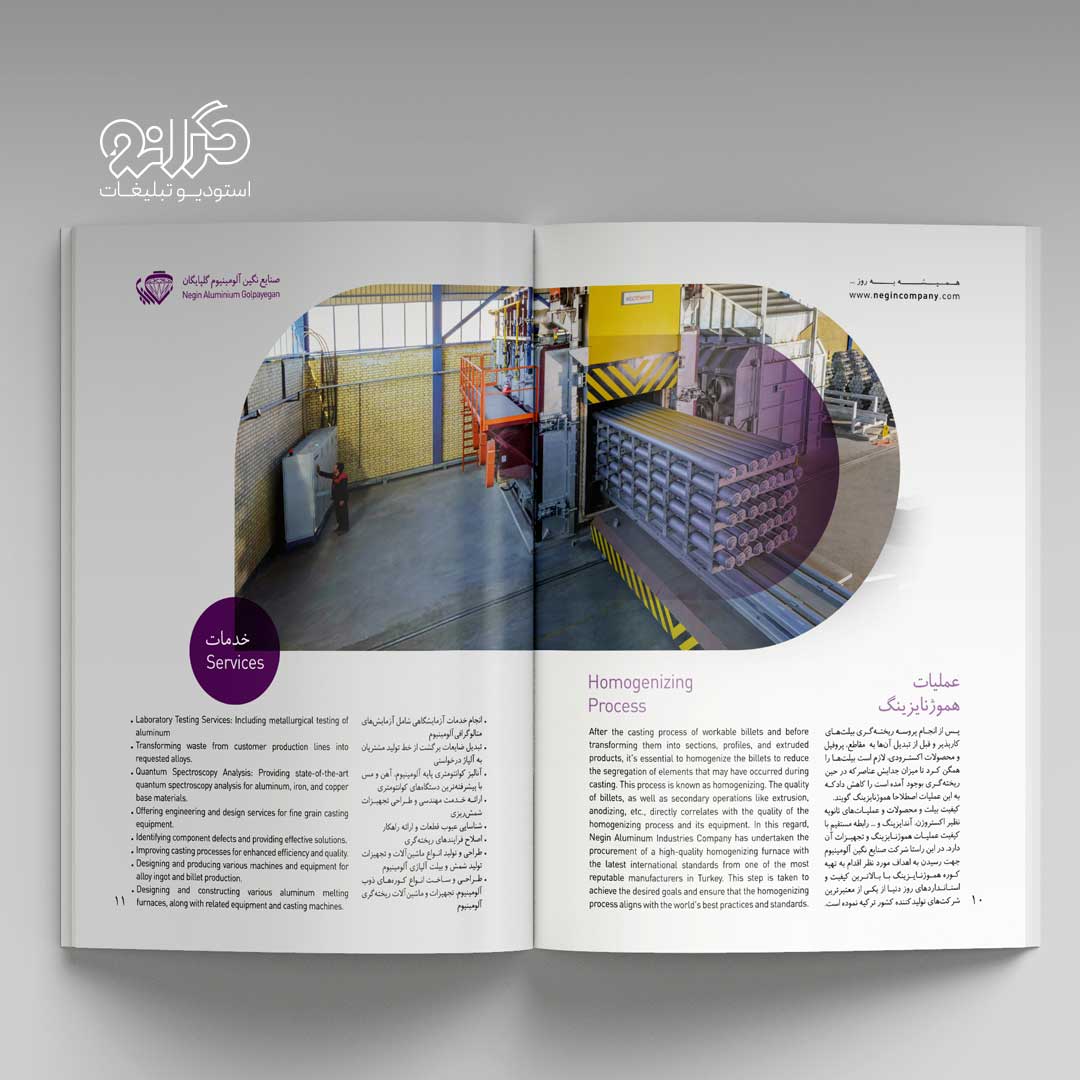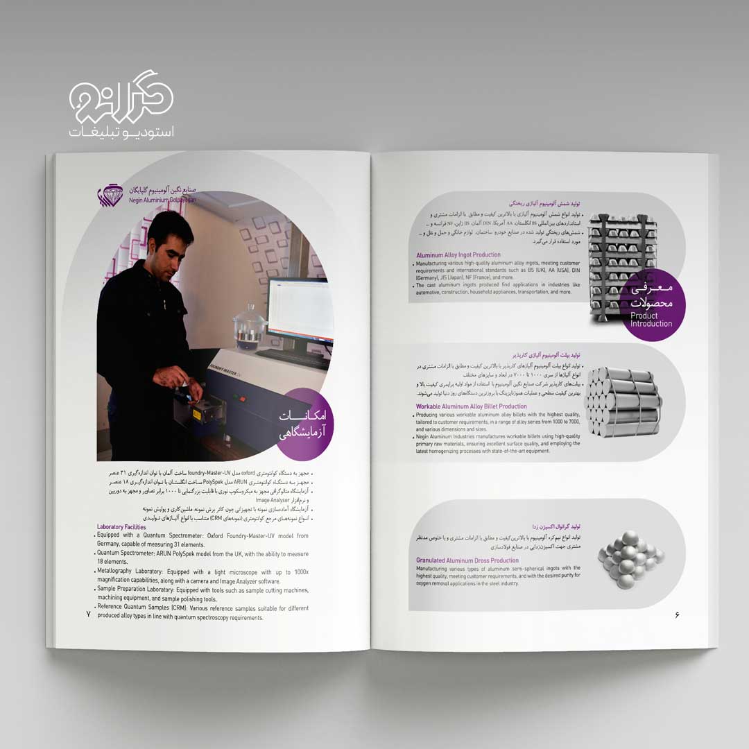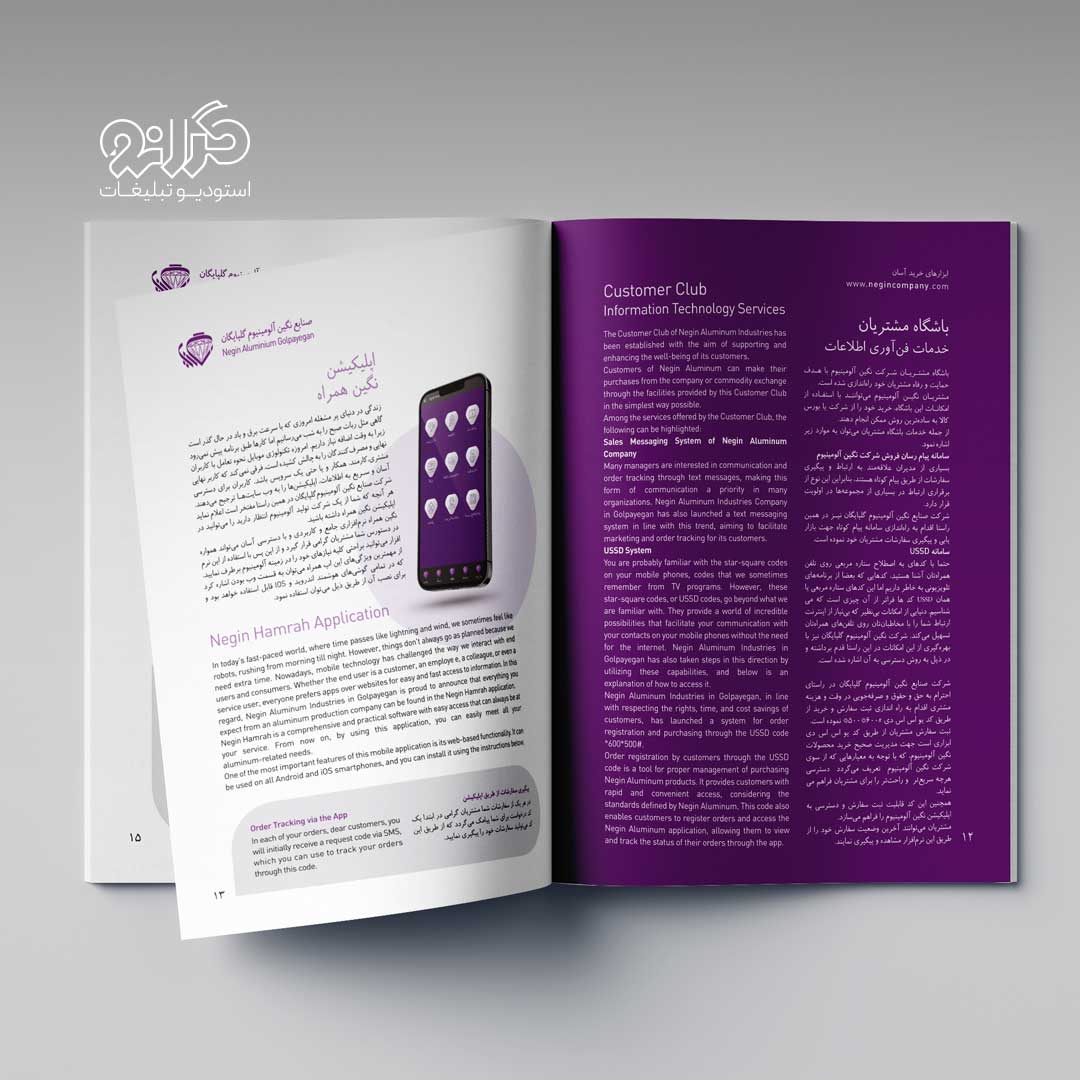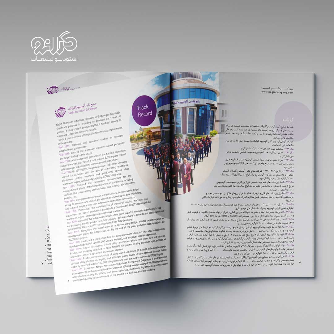 طراحی کاتالوگ صنعتی صنایع نگین آلومینیوم | نمونهکار بروشور و کاتالوگ