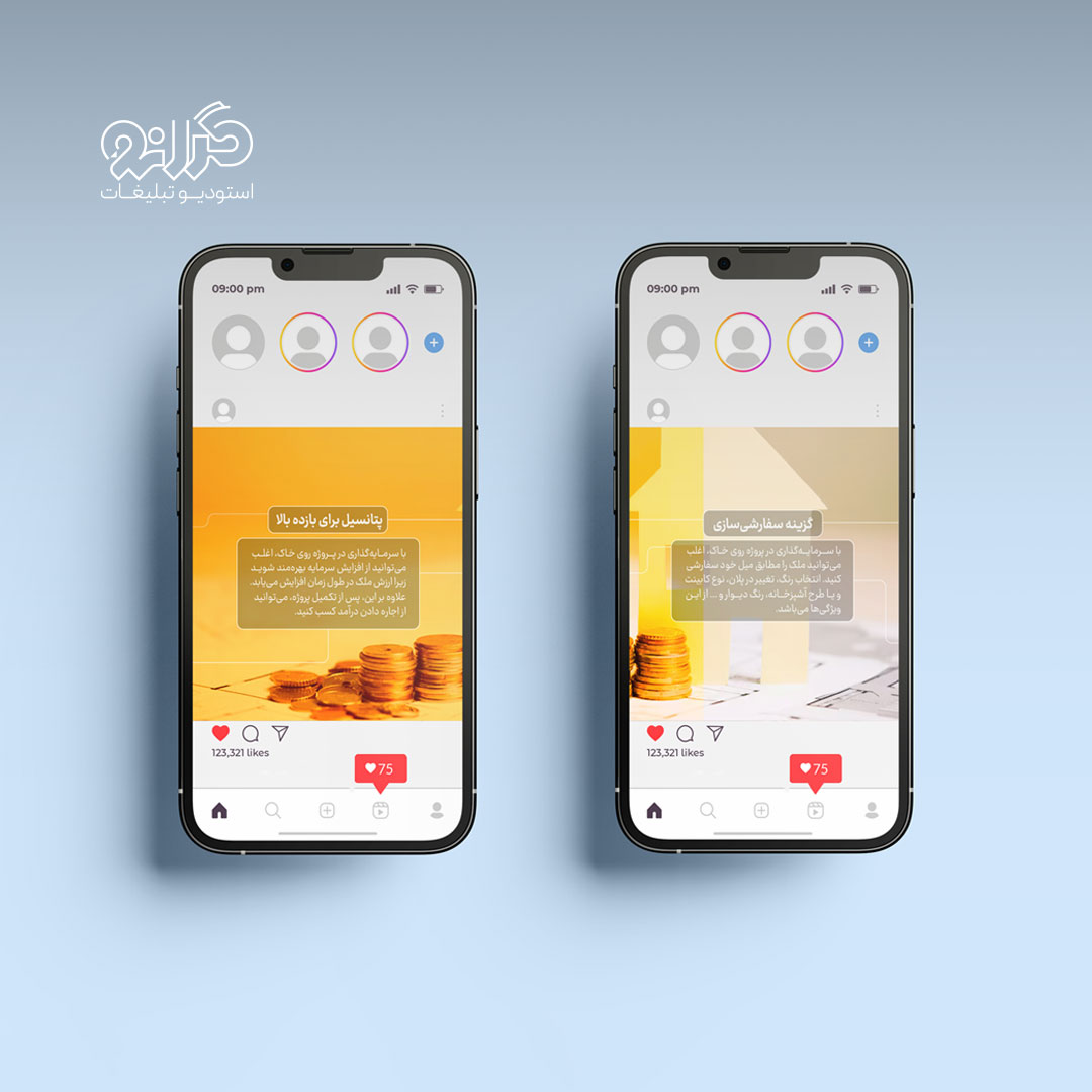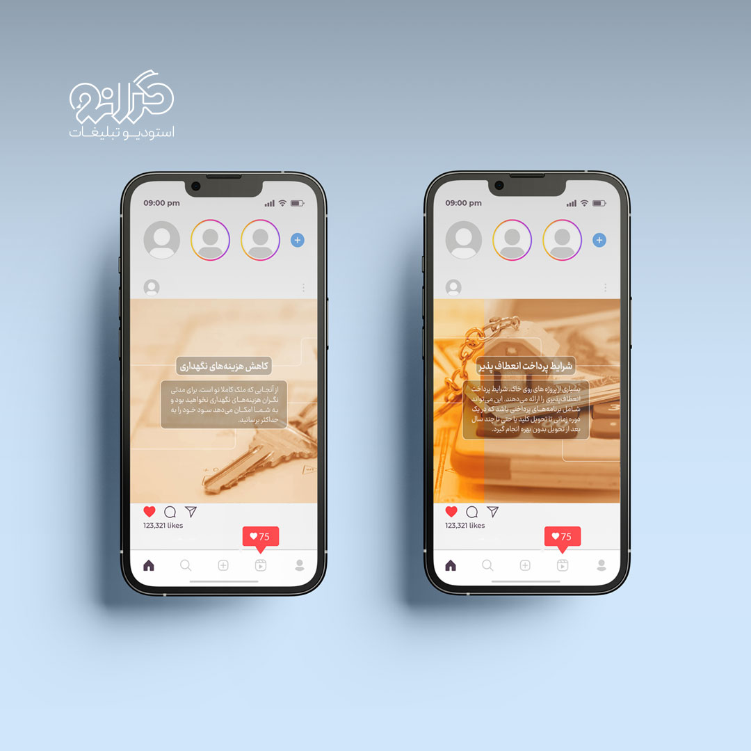 ما در این مرحله، قالبهایی را برای پُستهای اطلاعاتی عمیقتر توسعه دادیم. این پُستها، شامل جزئیاتی نظیر نقشههای معماری، اطلاعات مربوط به متراژ، امکانات رفاهی پروژهها و تحلیل بازده سرمایهگذاری بودند. ما این دادههای فنی را با استفاده از تایپوگرافی حرفهای و چیدمانهای دقیق، به محتوایی قابل فهم و معتبر تبدیل کردیم.